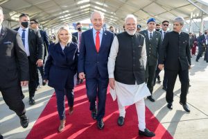 אש הממשלה בנימין נתניהו ורעייתו שרה נתניהו נפרדים מראש ממשלת הודו נרנדרה מודי בנתב״ג. פברואר 27, 2026